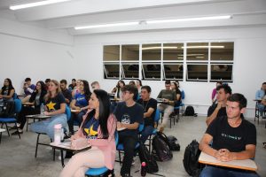 Com uma fala inovadora e dinâmica, o economista Vinicius trabalhou com os alunos temáticas de extrema importância no mercado de trabalho como, o lugar de cada um no mercado de trabalho e qual a importância de se ter diferencial!