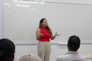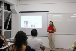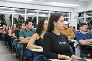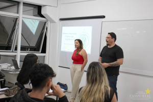 Na aula, a professora apresentou as suas experiências como médica veterinária, bem como demonstrou como as diversas áreas da profissão, desde o âmbito profissional até o pessoal, transmitindo uma fala que levaria conhecimento com experiencias bem vividas aos alunos da turma.