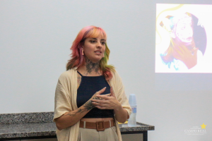 Enquanto isso, as acadêmicas do curso de Estética e Cosmética mergulharam em um emocionante Workshop de Maquiagem Artística, conduzido pela talentosa maquiadora artística Geovana Bortoluzzi. Durante este workshop, Geovana recriou maquiagens de Caveira e Zumbi, apresentando diversas técnicas para atingir resultados surpreendentes.